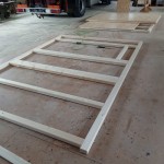 Nachdem die Baupläne fertig sind, wird mit dem Zimmermann alles besprochen. Mit einem speziellen Programm setzt er die vom Baumeister gezeichneten Pläne in ein Holzriegel-Haus um. Dann wird das Holz bestellt und in der Zimmerei nach Maß geschnitten. Alle Teile werden nummeriert und verladen. Nur so kann ein rascher und reibungsloser Ablauf auf der Baustelle von Statten gehen.